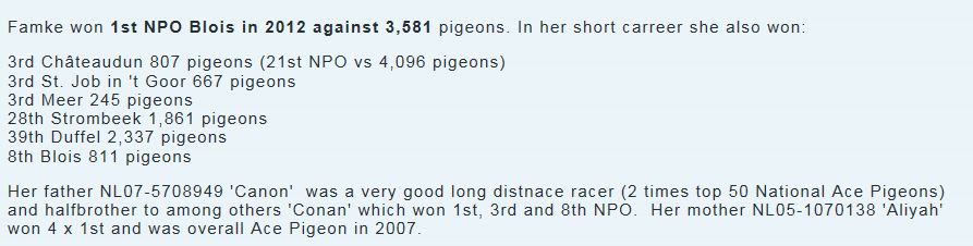 พี่ชายแท้ๆของ “FAMKE”ยอดนกแข่งของ EBBEN ที่ชนะรางวัลระดับชาติที่ 1st NPO BLOIS 2011