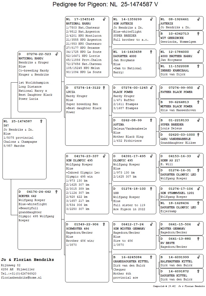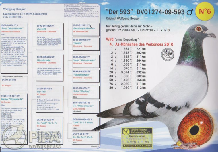 เป็นนกแข่งที่เก่งมากๆของ Wolfgang Roeper และ Erik Limburg ก็ได้มาซื้อไป