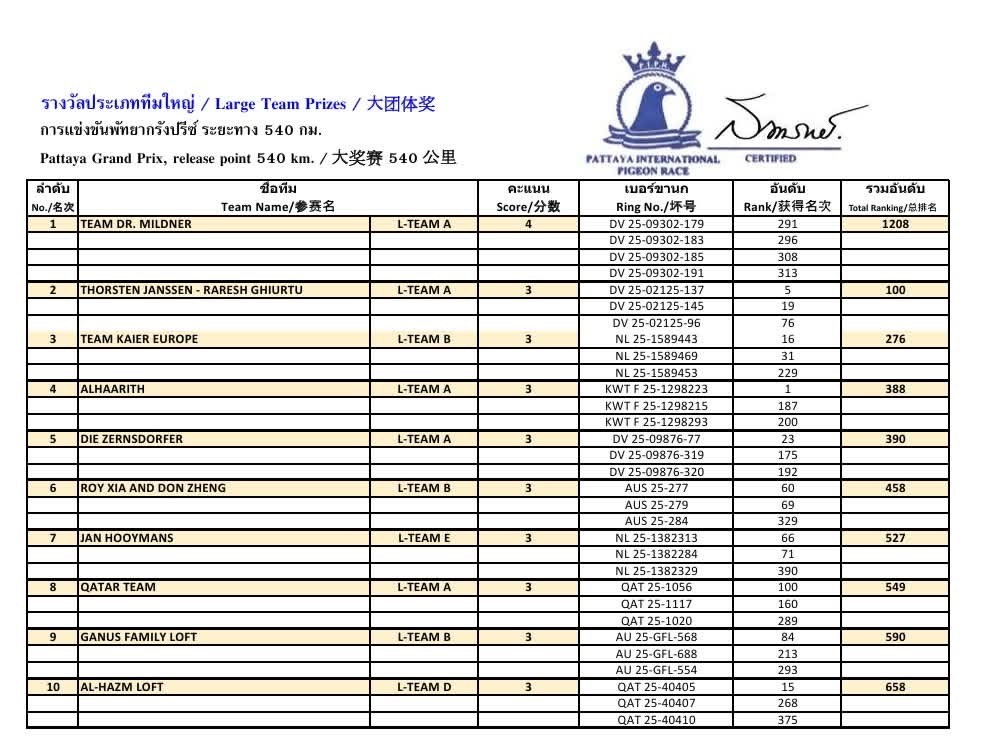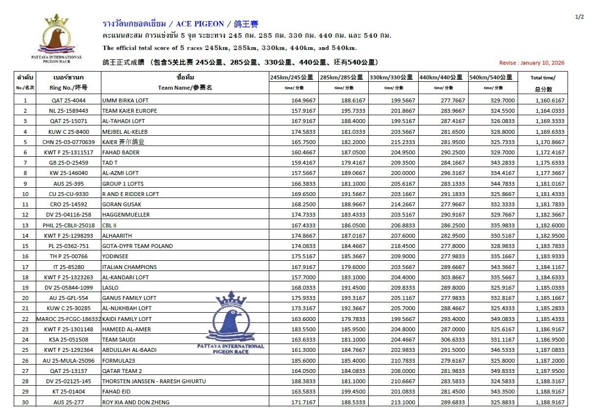 ในที่สุดการแข่งขัน PATTAYA INTERNATIONAL PIGEON RACE (PIPR)  ครั้งที่ 10