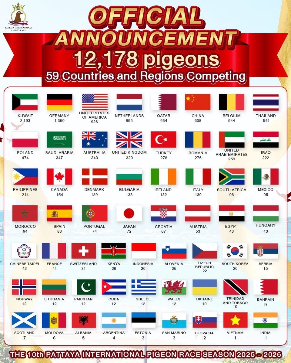 2026-01-12 13:00:17 ใน สรรสาระ » 0 206 10th PATTAYA INTERNATIONAL PIGEON RACE 2025